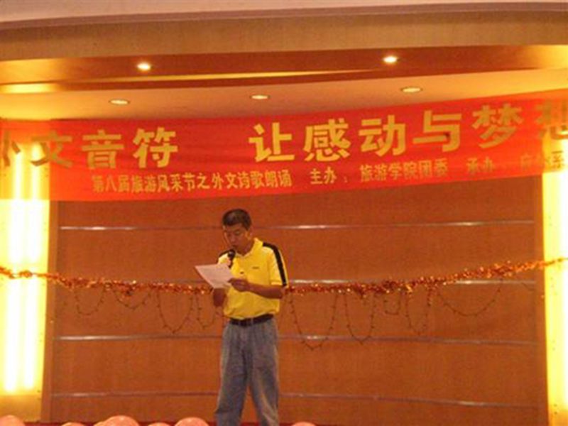 5月16日晚,由pa集团官网旅游学院团委主办,应用外语系学生会承办的pa集团官网旅游学院第八届旅游风采之外文诗歌朗诵大赛在学院多功能厅正式拉开帷幕。比赛在应外系系主任冯源教授的致辞和深情的诗歌朗诵中拉开序幕。