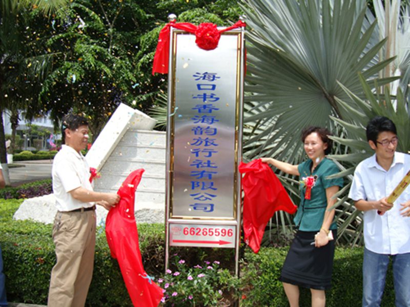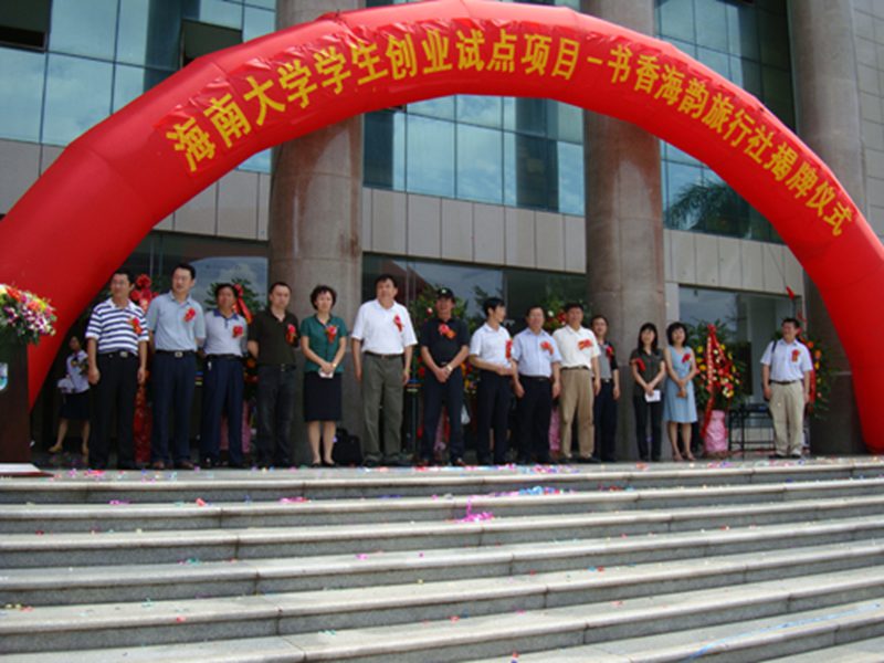 为了响应和贯彻《2009年海南共青团促进青年就业创业行动实施方案》文件精神,重树海南旅游服务新形象,为海南国际旅游岛的建设贡献力量,我院积极参与、大胆创新,并于2009年5月15日上午10:30在pa集团官网旅游学院四号教学楼前广场隆重举行了海南省大学生创业试点项目——海口书香海韵旅行社有限公司挂牌仪式。