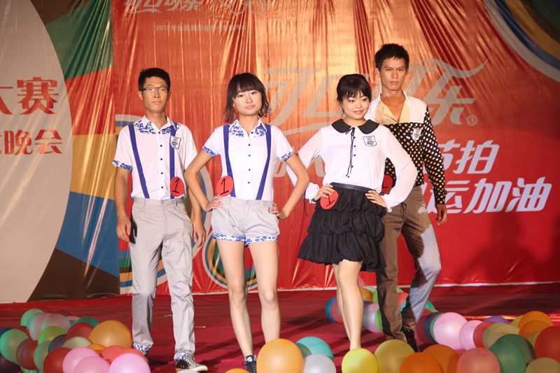 一场独特的开场秀,滑稽的表演,活灵活现的小丑把现场的气氛完全调动起来了,接着便是经过了初赛复赛后,从25幅作品中中脱颖而出的6幅作品进入决赛的院服设计展示,6组模特整体亮相一组组独到的设计,一位位神采飞扬的模特,让在场的评委、嘉宾以及各位观众无不目不转睛地紧随舞台上的一个个身影,唯恐错过任何一个精彩的画面。与此同时,院服设计师也对他们的作品理念进行了阐述,展示的最后评委老师也给出了中肯的意见。在前三组选手的设计作品展示和讲解过后,旅游学院历届院服和海南岛环保创意服饰也集体亮相,一件件美丽的服装,一道道妙丽的身影……现场的气氛再一次到达一个高潮!大家见证着别样的岛服展示,回想着历届院服的身影。紧接着进入了后三组选手的作品展示。出色的选手们得到了评委们的肯定,同时评委们妙语连珠式的评价一样赢得了现场的阵阵掌声。