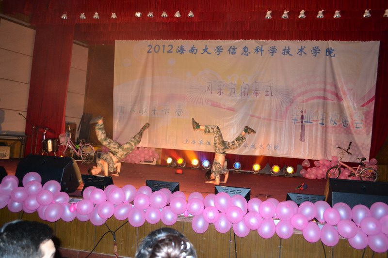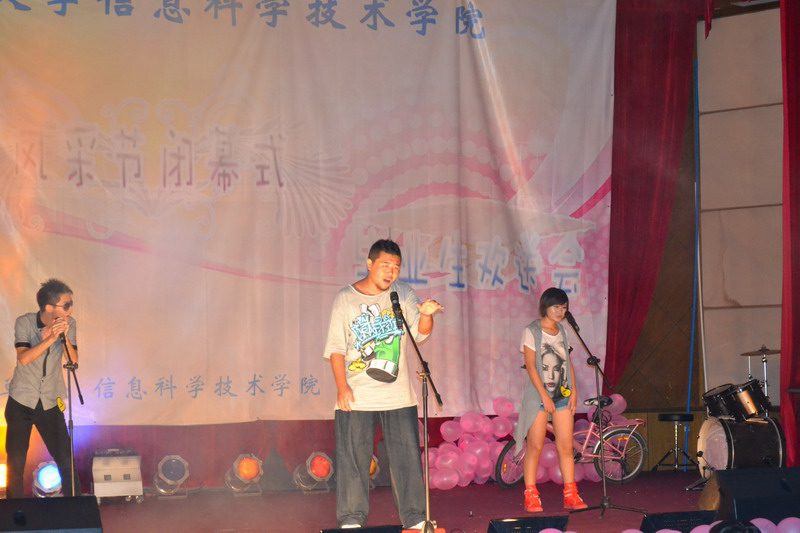 6月2日晚,信息科学技术学院第六届“树华夏礼仪新风,铸海大明日辉煌”风采节闭幕式暨十大歌手决赛在田家炳报告厅隆重举行,本场晚会同时也是献给我院2012届毕业生的欢送晚会。院党委陈明宝书记、蒙秋妍副书记、计算机中心主任邢琳教授及学工办全体老师出席。 由Incomplete乐队带来的开场秀《21guns》和《单车》震撼开场,整场晚会以音乐为主打,舞蹈穿插其中,同时幽默、搞笑不断,台下的观众和啦啦队不时爆发阵阵掌声,晚会在时尚、欢乐的气氛中进行。 期间,陈明宝书记为2011年度信息科学技术学院学风建设“先进班级”颁奖;蒙秋妍副书记为2011年度信息科学技术学院“优秀学生干部”代表颁奖;邢琳教授为2011年度信息科学技术学院“学习标兵”代表颁奖;欧少红老师、陈鹏老师为第六届风采节活动期间的获奖集体和个人颁奖。 “我们一同用心捧起晶亮的雨滴、我们一起用手挽住飘逸的长风,我们在春天的原野默默祝愿生命与永恒。那洁白的云朵是我们真挚的过去、那湖水的丰盈是我们蓄满的深情,那空气里激荡着的是我们露珠般闪烁的笑声。”晚会在由我院2009级学生次拉姆、斯郎曲西及其他学院藏族学生带来的藏族歌舞《青春踢踏》中结束。雪域高原优美、欢快的旋律在不断回响,祝愿在校的同学学习进步、毕业的同学工作顺利,共同用青春的踢踏去诠释生命的精彩与感动。扎西德勒!