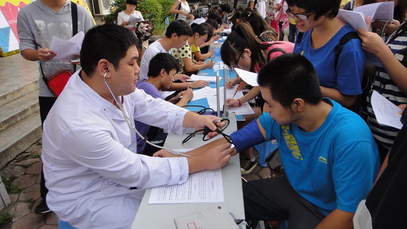 采血车旁,医护人员耐心讲解了献血相关的安全卫生知识,同学们自觉有序的排队等候献血并积极配合医护人员做好登记、血压测量和血型化验等工作。献血过程中我们了解到,学生第一党支部的郝杰威同志已是第五次献血,献血总量达到2000ml,他这种无偿奉献的精神值得我们每一个人学习和赞扬。