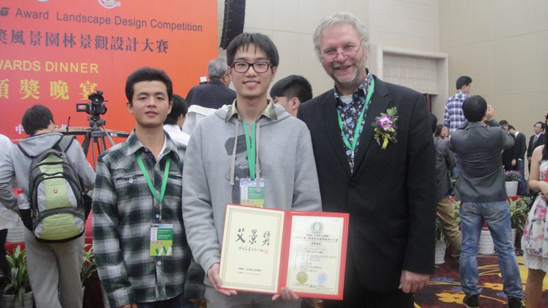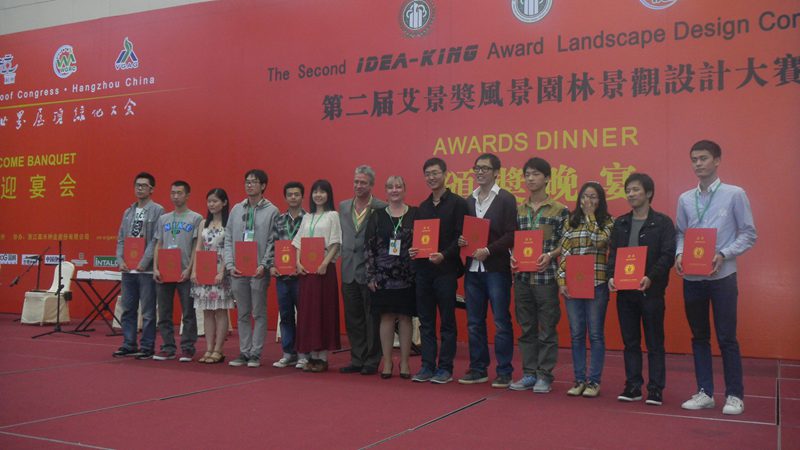 在学院领导的肯定与支持下,三位同学参加了国际景观规划设计大会暨第二届国际景观规划设计大赛Idea-king艾景奖颁奖论坛。10月24日,由杭州市人民政府、世界屋顶绿化协会、世界屋顶绿化技术联盟、中国城科会绿色建筑与节能专业委员会主办的为期6天的2012年世界屋顶绿化大会与艾景奖颁奖大会在杭州正式拉开帷幕。住房城乡建设部副部长仇保兴致函祝贺,世界屋顶绿化技术联盟主席曼弗雷德、杭州市人民政府市长邵占维先生、两院院士、原国家建设部副部长、世界屋顶绿化协会名誉主席周干峙院士、原国家建设部副部长郑坤生、上海世博园区总规划师吴志强、杭州市人民政府副市长张建庭、世界屋顶绿化协会秘书长王仙民、新加坡、法国、英国等20余国家代表、2012年伦敦奥运会总体规划和设计团队代表安德鲁•詹姆斯以及国内外相关从业人员1000多人参加此次会议。在论坛中,三位同学充分表现出了海大学子积极向上的求真精神——在钱江新城立体绿化、中国美院王澍建筑群设计、西湖整治等考察中,同学与众多园林行业人士进行了交流学习;在每个论坛上,同学们认真学习了来自各国专家带来的景观发展前沿信息,并在颁奖晚宴上与孟兆祯院士、唐学山教授、李建伟总裁、帕特里特•布兰博士(法国)、曼敷雷德.科勒教授(德国)、史蒂文.派克主席(加拿大)、佛罗莱恩. 贝茨勒(德国)等中外专家学者进行了交流学习并合影留念,外国友人均对海大学子的求学精神表示赞赏,唐学山教授也对海大学子到北京林业大学深造表示欢迎。