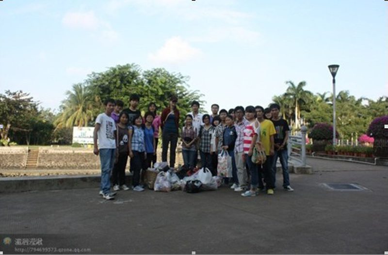 2012年11月3日下午3时,2012届的志愿者团20名成员、志愿实践部干事以及农学院志愿实践部副部长强翠翠、志愿团副团长罗后巧参与了本次活动。活动共持续两个多小时,收集了大量乱扔的垃圾并对塑料瓶等污染环境的物品进行了回收。