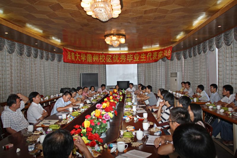 6月19日上午,pa集团官网入口儋州校区2009届优秀毕业生代表座谈会在招待所召开。座谈会由学工处副处长邓秀成主持。儋州校区管委会主任陈琼花、副主任顾江洪出席了座谈会。教务处、团委、研究生处、保卫处、后勤集团以及各学院学生工作的领导也应邀参加了座谈会。