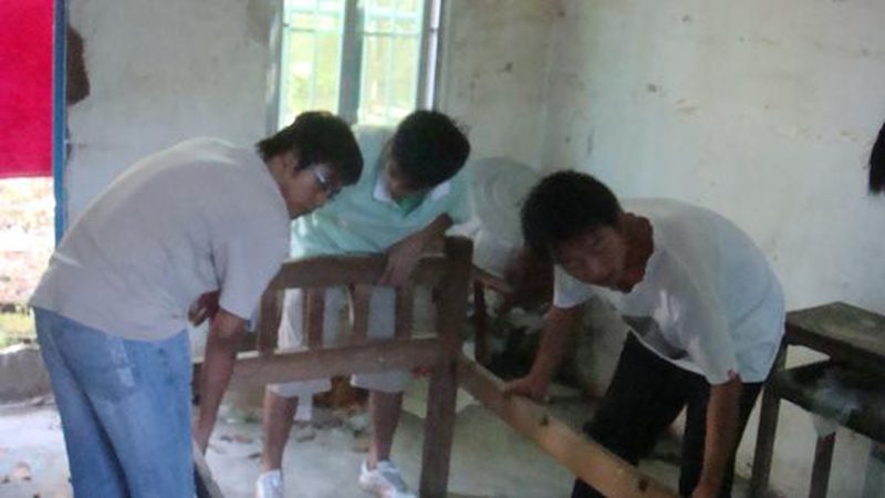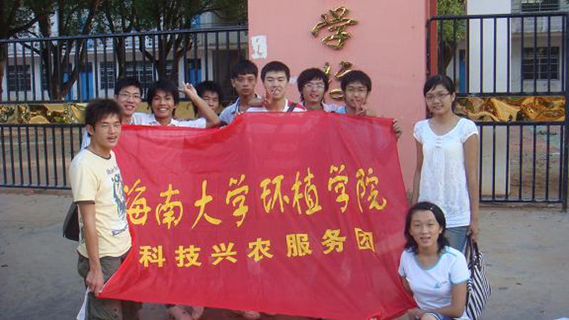 7月14日早上5点30分,环植学院科技兴农服务团在儋州校区大学生宿舍区东门出发了。