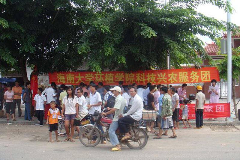 7月21日,pa集团官网环植学院科技兴农服务团应广大乡亲需求,服务团的大学生与环植学院张荣意教授、周祥副教授、环植学院党委副书记崔昌华、环植学院团委书记姚天增一道,在昌江县十月田镇开展了农业生产技术服务活动。