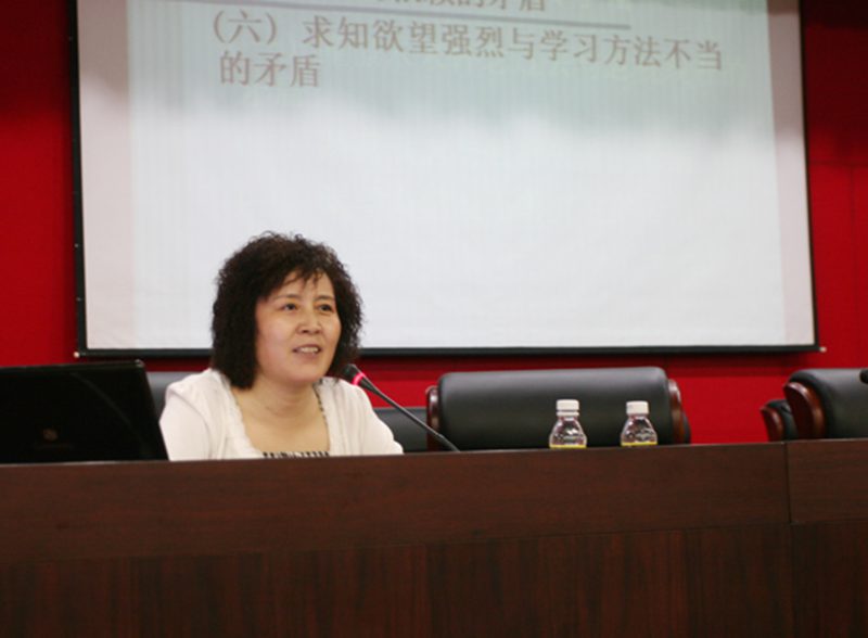 讲座最后,马教授重点解说了如何化解入学适应期的心理矛盾。她深入浅出地分析了新生入学后遇到的个案,告诫大一新生要着眼现在,看重当下,确立目标,设计未来,树立正确的人生观和处世观。