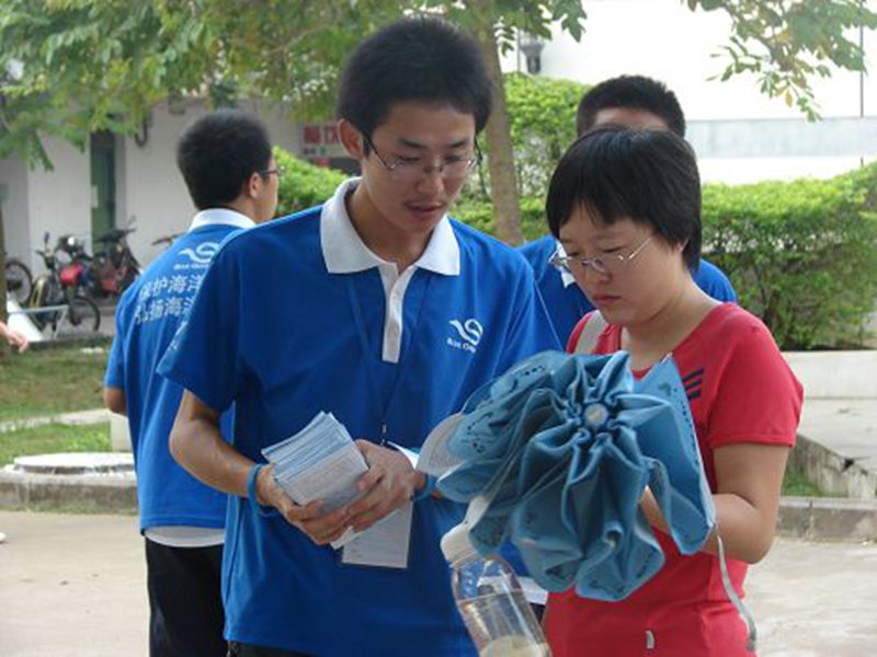 2009年11月7日,pa集团官网海洋学院团委学生会在一食堂门口全面展开了“‘蓝丝带’海洋保护计划”宣传活动。