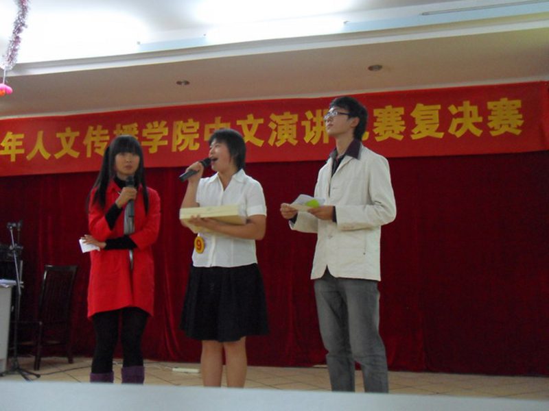11月10日下午2:30,由人文传播学院学生会主办的“2009年人文传播学院中文演讲比赛复决赛”在邵逸夫学术交流中心大厅成功举办,在初赛中脱颖而出的18位选手参加了此次比赛。光临本场比赛的嘉宾有学院党委孙晓媛副书记,邀请到的评委有中文系仲冬梅老师、戏剧影视文学系张军老师和张军军老师。同时邀请了校学生会副主席和各兄弟学院学生会代表出席此次活动。学院学生会主席团和各部部长、干事也出席了此次比赛。比赛现场气氛异常热烈。 比赛在舞蹈《床前明月光》中拉开了帷幕,18为选手一一精彩亮相。接着是以“我爱我的祖国”为题的主题演讲,18位选手各显身手,激情洋溢,特别是9号选手成玥以《华邦本色,青春飞扬》讲述了个人的暑期支教经历,用真情实感和满腹才情征服了评委和在场观众,获得了93.67的高分和全场热烈的掌声。比赛还穿插了歌曲《看得最远的地方》和《梦见铁达尼》,深情的演唱和美妙的歌声,赢得了阵阵掌声。中场互动游戏也得到观众的积极参与。然后是即兴演讲,10位选手又一次角逐,他们都在极短的时间里,发挥自己的才智,再次征服评委和观众,以我口说我心,引发了众人的人生思考。 最后,比赛评出了四大奖项。一等奖:成玥,二等奖:李依蓓、周凤婷,三等奖:纪晓娇、李禾臻、周红,优秀奖:王天巍、孙妍、李思琪、纾扬。张军军老师以自己的演讲、工作的经历对此次比赛做出了精彩的点评,并建议要注重语言表达和临场应变能力的培养,引导同学们思考人生之路。接着,各位评委老师和孙晓媛副书记为获奖选手颁奖,并表达了对获奖同学的期望,现场气氛达到高潮。 一年一度的中文演讲比赛在雷鸣般的掌声中圆满结束。此次比赛不仅丰富了大家的课余生活,展现和提升了大家的演讲与口才能力,更重要的是表达了海大学子对祖国母亲的热爱之情,充分彰显了人文风采。