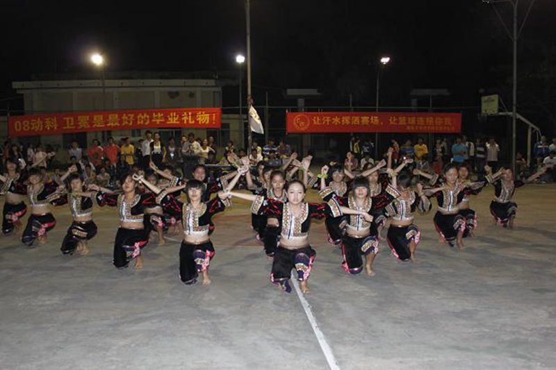 比赛开始前,优美动人的彝族舞蹈《扣烟盒》一下子就引爆了全场观众的热情。随后,伴随裁判的一声哨响,比赛正式开始。08动科队球员们个个精神抖擞,势如破竹,传球、起跳、投射,令全场赞叹不止。而11动科队更是球技惊人,绝妙地抢断、巧妙地过人、精准的投篮无不引起全场阵阵欢呼和掌声。终于11动科队以38:21的比分稳拿上半场。