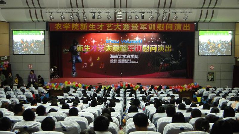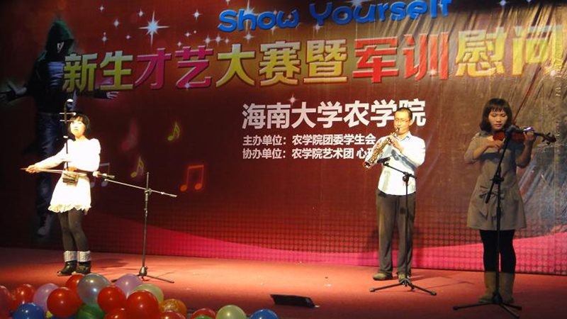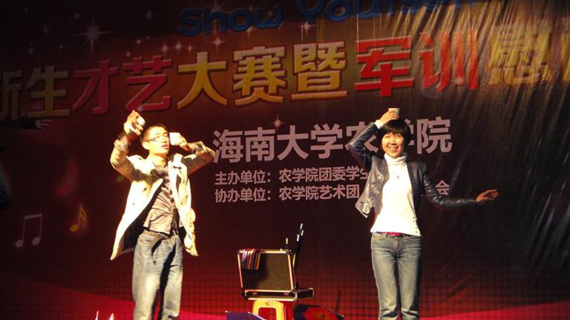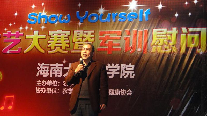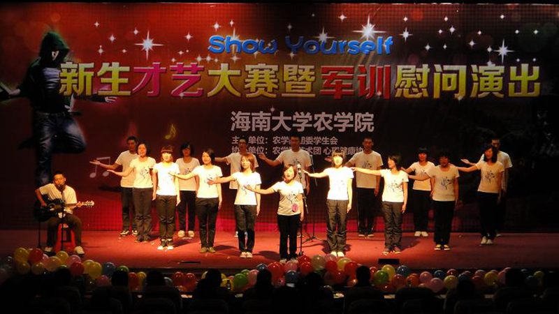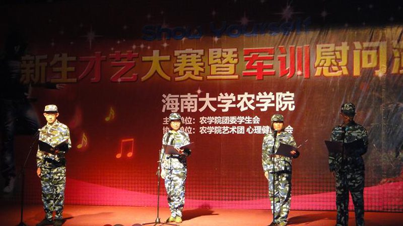 军训场上展英姿,才艺舞台显风采。为期13天的2011级新生军训终于在一片欢呼声和不舍声中完美谢幕。为了表达对军训学生的慰问,让他们更好地投入到新学期的学习中来,2012年2月26日晚8点整,农学院于行政报告厅隆重举行2011级新生才艺大赛暨军训慰问演出。我院院长何朝族教授,综合办主任樊俊华老师,学工办全体老师和各兄弟学院主席等出席了本次晚会。