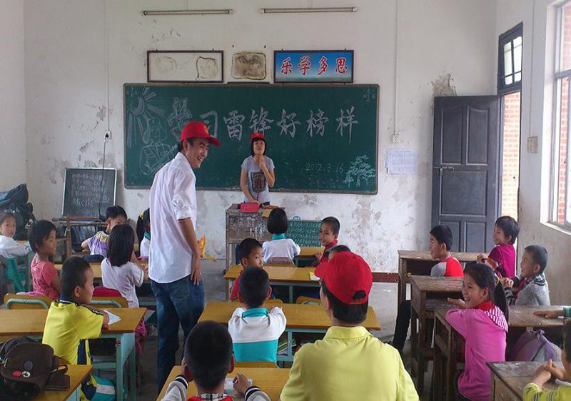 志愿者们深入三、四年级给小学生讲雷锋故事