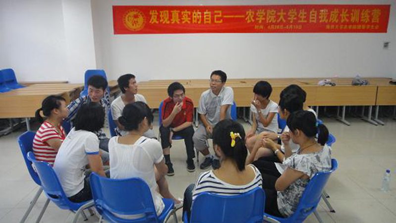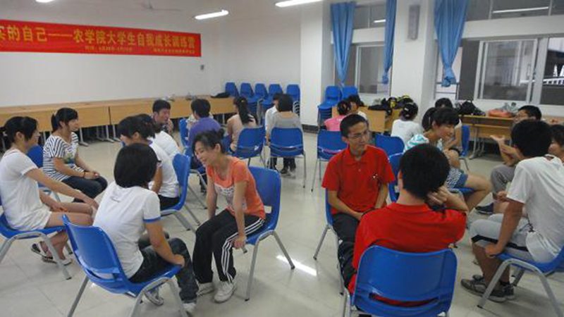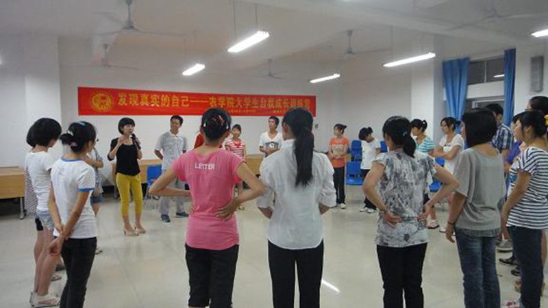 2012年5月5日下午14:40,在农学院心理辅导员李洋老师的带领下,农学院大学生自我成长训练营第一次活动在4教414教室正式开始。