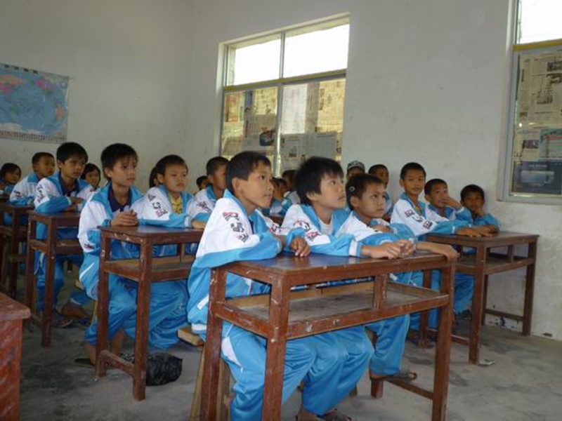 只是学校的教学条件实在太差了,这让李校长刚舒缓的眉头又紧蹙起来。有的年级不足10人一个班上课。教室的桌椅破旧不堪不说,墙壁裂开长长的口子,一看就知道是危房,一遇下雨天,房屋漏水厉害,学校不得不停课以保证学生安全。老师的宿舍也同样难于幸免,做饭烧的柴禾是捡来的被台风吹断的橡胶树枝,每天下午的活动课孩子们做得最多的就是在老师的带领下上山挖野菜去。