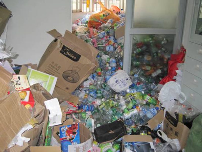 会后所有工作人员兵分两路,一路前往旅院食堂前摆点,对此次活动有疑问的同学可以到摆点处进行咨询,另一路,即十二个三人小组前往各自负责的楼层,下宿舍宣传并收集废瓶和废书报。每个小组每天负责一层楼,16日我们的工作地点是旅游学院3号和4号公寓楼,17日则在旅游学院1号和2号公寓楼,为期两天的工作开展得有条不紊,热火朝天。