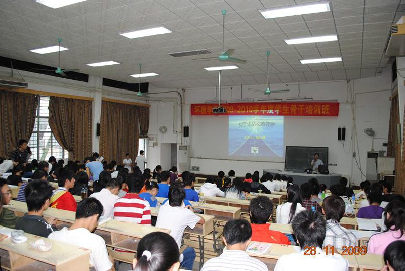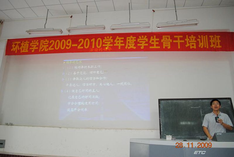 (记者:杨济徽.王中凡,摄影:韩小波)2009年11月28日,环植学院09-10学年度学生骨干培训第二轮理论课在电教室进行。