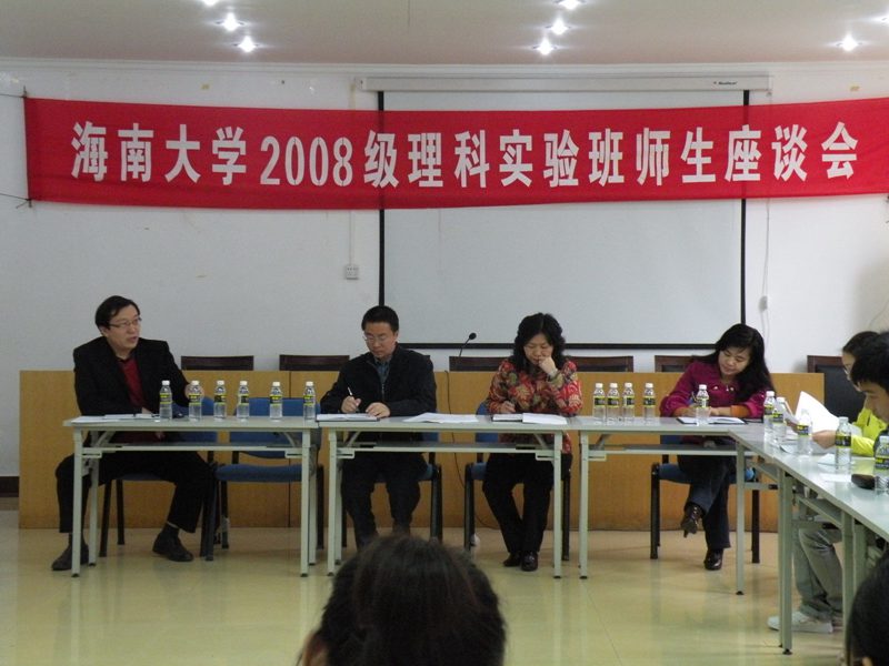 师生之间的讨论交流进行顺利,会议在温馨和谐的氛围中进行。各任课教师和学生代表均对促进实验班发展献言献策,并在很多问题上达成了一致。最后,曲涛副处长总结了此次座谈会,重申了学校对实验班所给予的厚望,再次提出了希望大家提高学生的独立学习能力和各类实际运用能力的希望,并表示在以后的工作中会争取给予文理科实验班更多的支持、更良好的学习环境、更优越学习资源,以助同学们早日成才! (文:08理科实验班 罗宋平 李恬)//www.hainanu.edu.cn