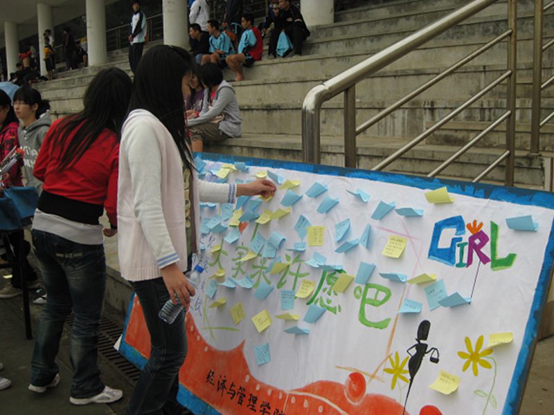 3月7日下午,在第一田径运动场,经济与管理学院为庆祝女生节的到来,在学院女生部的精心筹备以下举行了女生节班级趣味拔河比赛及踢毽子比赛。院党委书记符史岱、学工办主任吴新以及团委书记杨智平到场,和广大学生共同欢度女生节。