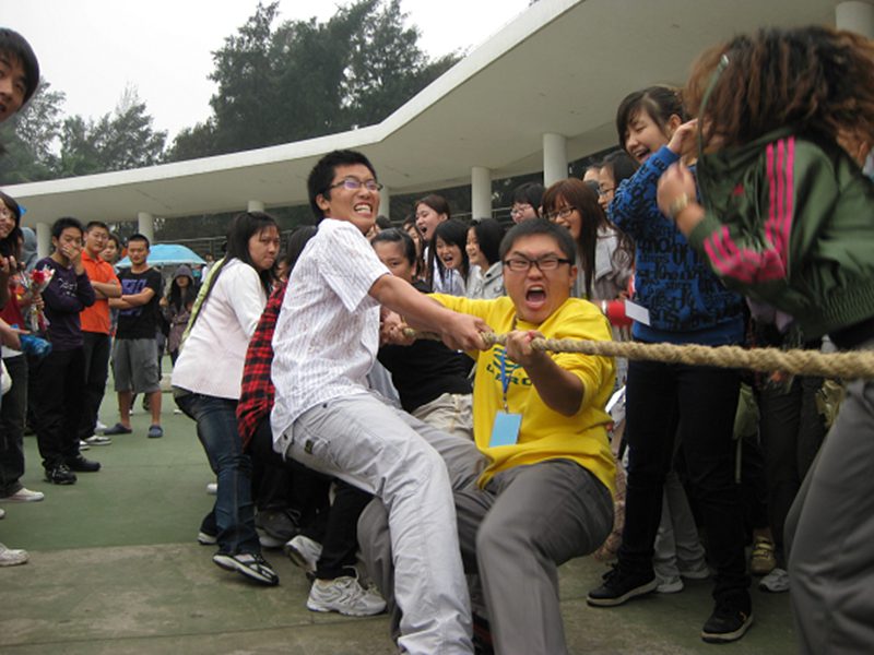 经济与管理学院本次共有三十支代表队参加拔河比赛,尽管天空飘着细雨,但是依旧不减同学们的热情。比赛在三块场地同时进行,观众震耳欲聋的呐喊加油助威声此起彼伏,响彻田径场!参赛女生们也把平日里的文静端庄的淑女形象抛在了一边,个个咬紧牙关,使出了浑身解数,头发散了、手擦破了也全然不顾。经过激烈角逐,08国贸以全胜战绩折桂,亚军则是新生军09农经,三等奖归属07统计和07会计。09金融、09工管和08金融收获优秀团队奖。