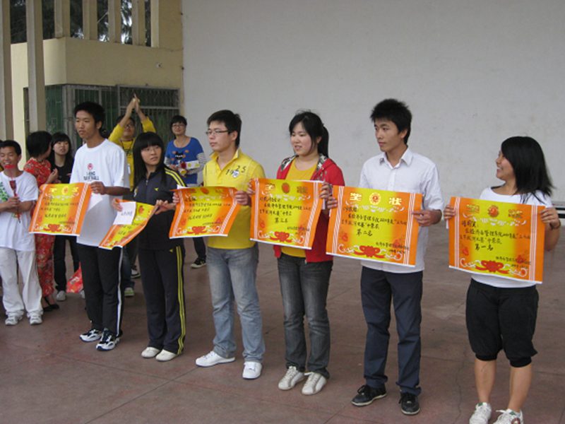在另一块场地,踢毽子比赛也进行的如火如荼,最终,08信管的王平、08营销的李宇新以及09统计的范媛媛分获冠亚季军。