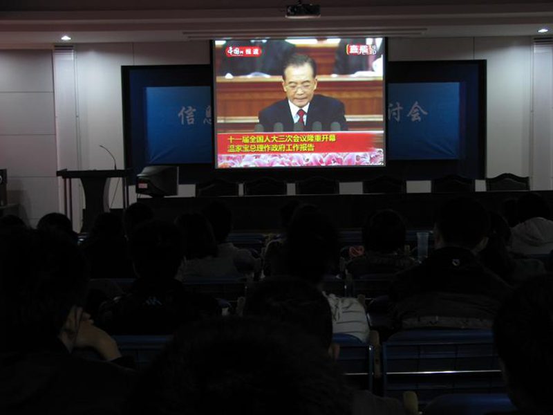3月3日和3月5日,全国政协十一届三次会议和十一届全国人大三次会议先后在北京开幕。为了让党员密切关注全国两会盛况,及时了解学习会议精神。3月9日下午,我院召开全体学生党员大会,全程收看和学习了温家宝总理在人大会议上做的政府工作报告,反响十分热烈。会议由学院电子系党支部书记齐昌盛主持。齐老师要求,会后撰写心得体会,要以深入学习全国两会精神为动力,全力抓好各项学习工作,不断提高和要求自己,做好本职工作,实现自身价值。