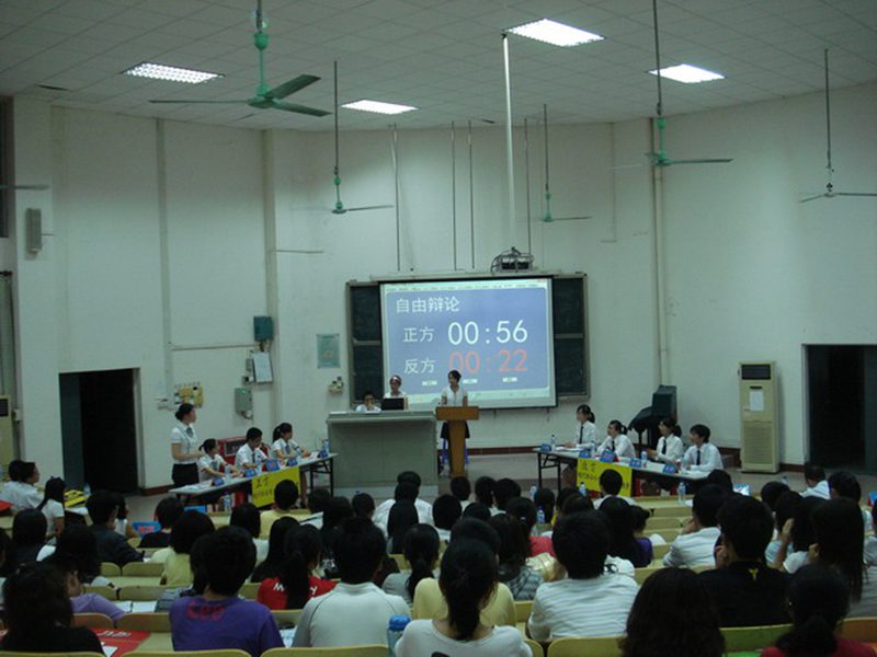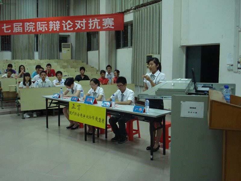 我院文韬武略辩论队为正方,参赛选手有一辩李禾瑧、二辩霍辉、三辩胡艳秋和四辩陈霖东,所持观点为“现代社会竞争比合作更重要”。