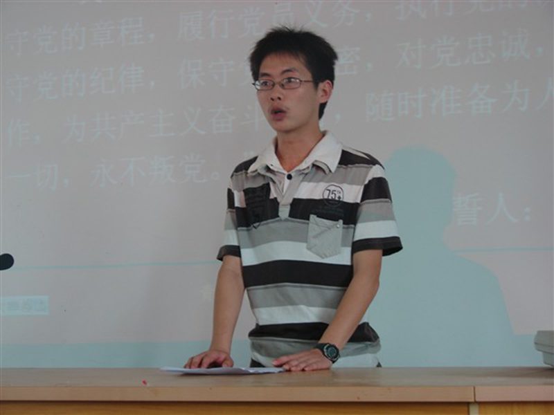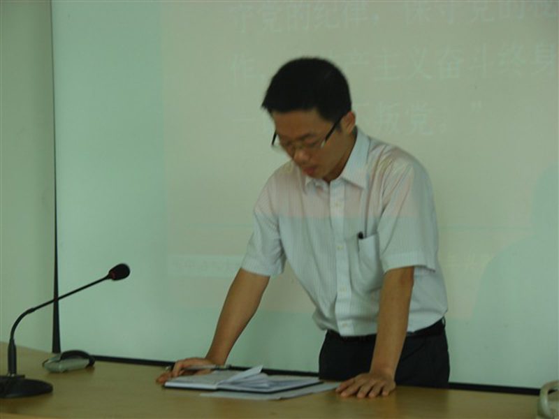 首先,李丽老师宣读了2009年加入党组织的预备党员名单,全体预备党员在新党员陈林同学带领下,面向党旗庄严宣誓。随后新党员代表2008级水产养殖学专业程川同学代表预备党员向党表决心,牢记入党誓词,不忘党员使命,全心全意为人民服务,努力学习、勤奋工作,充分发挥党员的先锋模范作用,无愧于共产党员的光荣称号。最后陈平书记代表党委对新党员和入党积极分子寄予了厚望并提出了三点明确要求:第一,希望新党员坚定信念,不辱使命;第二,希望新党员按照党员的标准严格要求自己,做好本职工作;第三,希望入党积极分子能认真参加学习理论知识,积极创造条件,争取早日加入党组织,党组织的大门永远向大家敞开着。