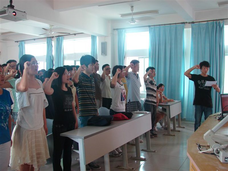 2010年4月6日下午3:00在海洋楼报告厅里响起了高昂的国际歌声,海洋学院入党宣誓仪式暨第四期入党积极分子培训班开班仪式在这里隆重举行。参加开班仪式的有学院党委陈平书记、院团委书记王林桂老师,第二学生党支部书记李丽老师,58名新党员和51名入党积极分子。仪式由院团委书记王林桂老师主持。