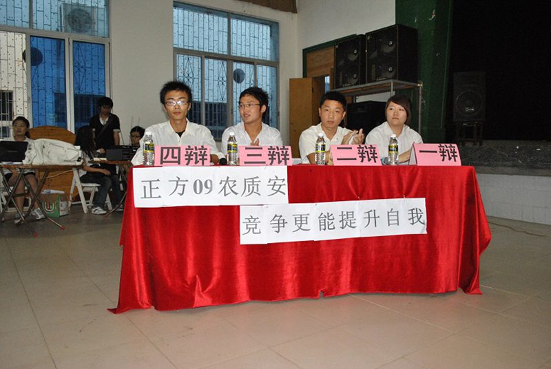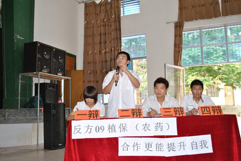 第二场辩论赛接踵而来,辩题为:是竞争还是合作更能提升自我。正反方分别为09农质安和09植保农药。整个辩论过程双方辩手都很投入,赛场的气氛也一直很紧张。正方农质安的辩手们以儒辩为主,自信稳重,条理清晰,在辩述观点的同时设下防线,不入对方陷阱;论据反方植保辩手们则以雄辩著称,语言犀利,反应敏捷,并且引经据典为自己论点寻找有力的论据。他们的妙语连珠,能言善辩不时引来评委和观众的热烈掌声,也让在场所有观众见识了两队的实力。