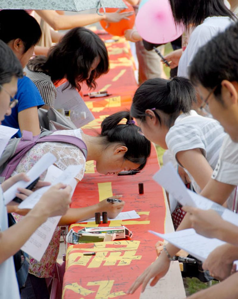 开幕式结束后,在场同学参加了“我爱我——给我心里一片晴空”千人签名仪式,观看了心理健康知识展板,参与了趣味心理测试以及领取心理健康宣传单等活动。