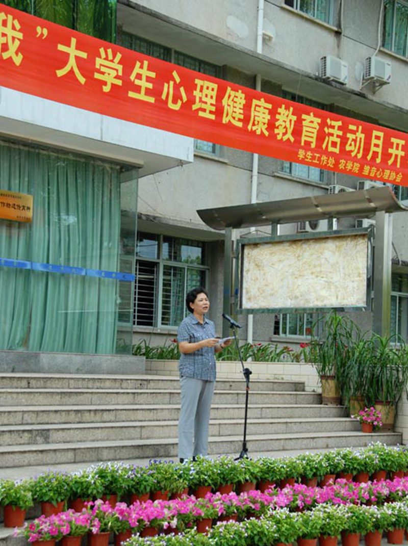 5月6日下午,农学院广场前人流攒动,“525我爱我”大学生心理健康教育活动月在这里隆重开幕。校区管委会主任陈琼花、相关职能部门负责人、各学院分管学生工作的书记和全体辅导员以及部分学生参加了开幕式。