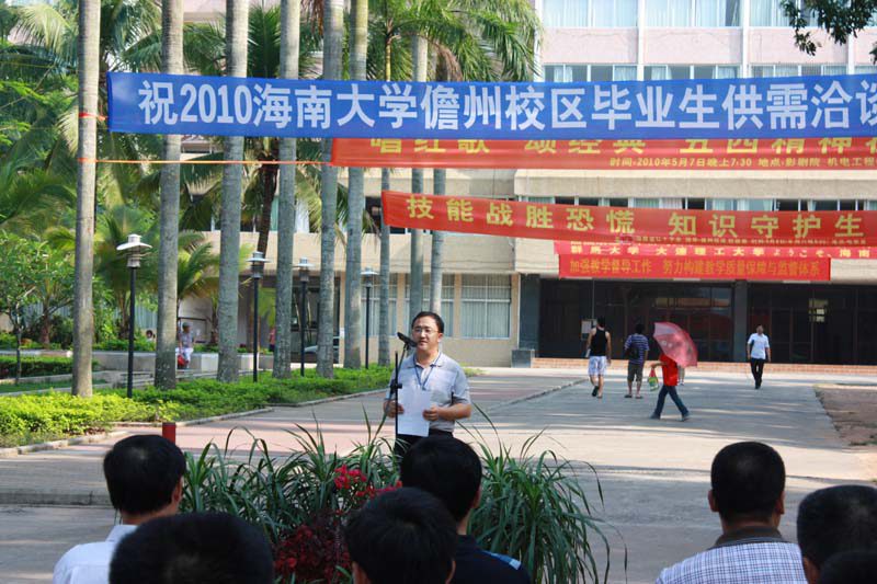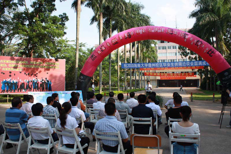 2010年5月8日上午8:00,在一片掌声当中,海南省就业局和pa集团官网共同主办,pa集团官网园艺园林学院承办的“海南省2010届毕业生夏季供需见面会”在儋州校区四号教学楼前顺利拉开维幕。广东阳江农垦集团公司、广东省茂名农垦局、三亚大兴园林、华丰原林、海南安邦农资有限公司等70多家用人单位出席了本次双选取会,提供岗位200多个,招聘总人数达800多人,专业需求包括:园艺,园林,设施、农学,生物技术,电气工程及其自动化,农业机械,机械电子,交通运输及车辆工程,机械草业科学、财务会计、文秘等十多个专业。
