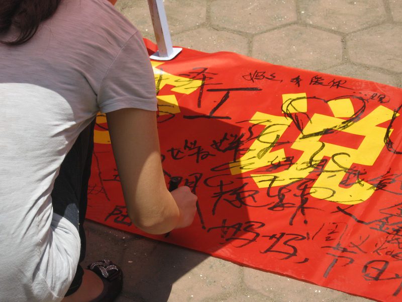 五月的骄阳并没有阻挡大家的脚步,同学们不顾炎热驻足参与活动,由衷地为妈妈祈福,向远在故乡的母亲献上一份孝心。小小的一张卡片,短暂的一个电话,不太宽的一条横幅,都盛满了暖暖的亲情,感动着在场的每一个人。
