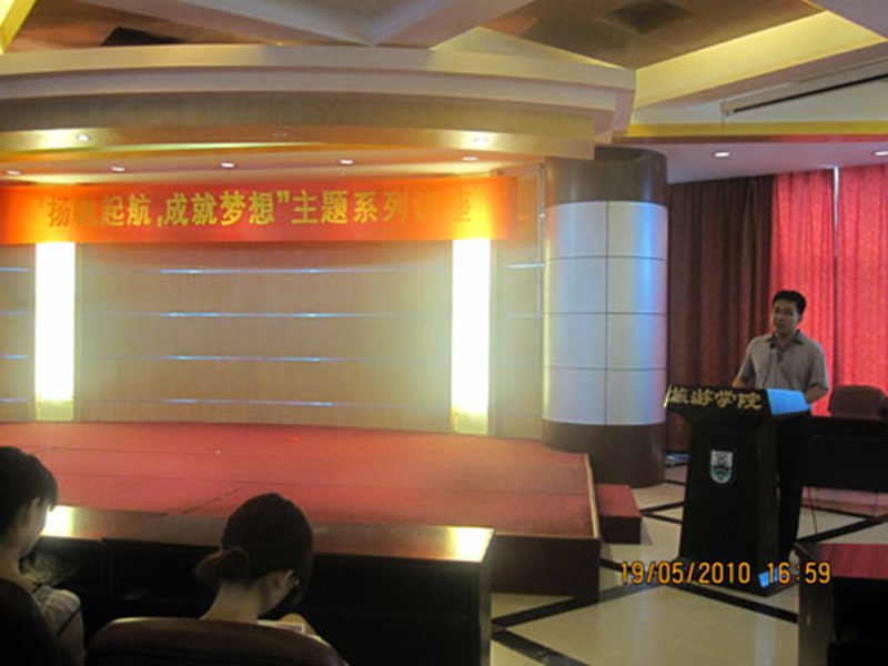 2010年5月19日16:40,旅游学院2010届毕业生“扬帆起航,成就梦想”系列讲座在旅游学院多功能厅顺利召开。pa集团官网就业指导中心副主任、国家级职业指导师陈卫东老师做了一场有关“就业形势与政策”的主题讲座,由学院学工办符涛老师主持本次讲座。参加本讲座的是旅游学院三、四年级的学生。