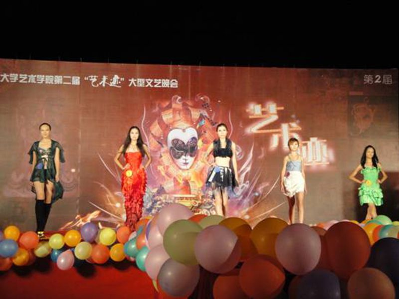为了活跃校园文化生活,展现艺术学院近期教学成果,彰显专业特色,创新活动品牌,由pa集团官网艺术学院团委、学生会主办的“艺术迹”大型文艺晚会于5月22日晚在起点草坪隆重上演。pa集团官网学生处王大群处长、材料与化工学院党委王茂钢副书记、信息科学技术学院党委蒙秋妍副书记、艺术学院党委陈泰义副书记、张志强副院长、院团委书记张婷老师、学工办副主任陈泽锐老师莅临晚会现场。 “艺术迹”是艺术学院独家打造的大型品牌活动,目的在于全面推进素质教育,巩固艺术教育成果。晚会节目来自我院各个专业,内容丰富多样,主要分为假面展、服装秀、拉丁舞、颁奖礼四个大环节进行。 晚会在夜空中绽放的一阵阵绚丽的烟花中拉开序幕。首先为我们表演的是十字路口组合的《无力去爱谁》、《天使》和09舞蹈班的《碧波孔雀》,一曲曲动听的音乐加上一段段曼妙的舞姿,转眼之间便将场下的观众带入如痴如醉的梦境。在文艺节目过后,就是我们晚会环节之一的假面展了。假面展分为班级作品和个人作品展示。模特们踏着轻柔的节奏,带着充满神秘的假面,宛如大自然的小精灵,透过一个个调皮的眼神让我们感受到了艺术的魅力。09舞蹈班同学表演自编自排的舞蹈《歌舞青春》,年轻而不失稳重,舞台上充满着学生的青春活力。 服装秀环节分为专业组和业余组两部分。业余组选手在统一发放的普通T恤上进行改造,设计出自己独一无二的服装。专业组的选手设计制作的衣服充分体现了独特的创作思想,蕴含着现代与古典结合的艺术元素。模特们穿着设计者的服装作品,优雅地走在T台上,对作品内涵的准确诠释,将设计者的思想理念与独特的韵味完美融合,再一次展现了我院设计教学的高水平成果。 接下来的拉丁舞比赛更是整场晚会的压轴好戏,共有五对选手参加本轮角逐。由汪冬、刘政带来的《倔强》则是一度将比赛带入高潮,用火辣的舞步,精准的节奏成功诠释了舞者的灵魂。 晚会最后,由陈泰义副书记上台致辞,并对晚会高质量的演出给予了高度评价。同时,评委团的老师们也对优秀作品做出最后评判:假面最佳班级面具奖 09绘画2班获得;最佳个人面具一等奖 07装潢周雅,二等奖07服装蔡钰,三等奖07装潢张展展;最佳人气面具奖 07装潢周雅;服装业余最佳服装设计一等奖08服装郝明月,二等奖08服装王木子,三等奖08服装马涛;专业最佳服装设计一等奖 07服装晁一丹,二等奖张一帆,三等奖周介东;舞蹈最具魅力拉丁组合奖1名刘政、汪冬组合。 整场晚会立意新颖,题材多样,形式丰富多变,选手们用准确到位的表演,饱满的热情,精彩展示了才艺,给以大家美的享受与欢愉,充分展现了我院积极努力推进素质教育、建设“211工程”的丰硕成果。