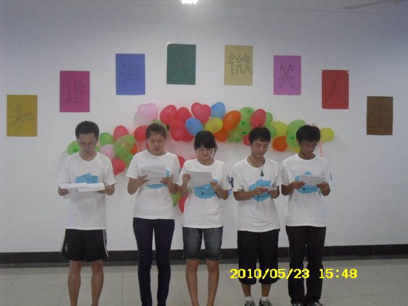 在5.25大学生心理健康日来临之际,2009通信2班策划举行一次心理健康主题班会,希望通过各种方法解决同学们心理存在的问题,丰富同学们的课余生活,加强同学们的沟通与交流,提高班级凝聚力。 5月23日下午,班委将全班同学以1间男生宿舍加1间女生宿舍为单位分组,在班会上表演节目和进行游戏,以此促进男女同学的交流,拉近宿舍之间的关系。大家玩得不亦悦乎,在游戏中领悟到了许多心理健康知识。 看看我们的活动照片吧。