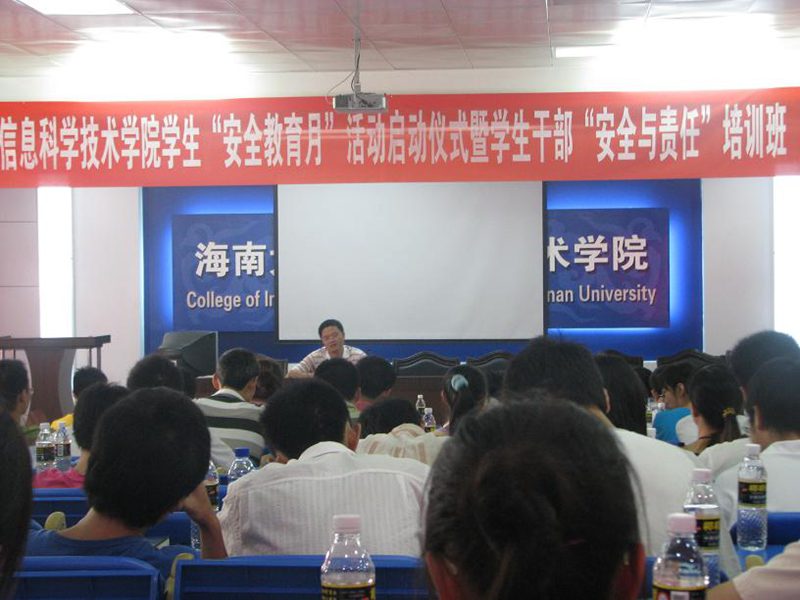 为进一步落实学校安全工作会议精神,不断提高广大学生的安全意识和应对突发事件的避险自救能力,信息学院制定了《信息科学技术学院学生“安全教育月”主题系列活动实施方案》,并发放了《关于做好近期学生安全管理工作的通知》,切实加强我院学生安全教育工作。经过了5月份的宣传动员,6月5日信息学院隆重召开了学生“安全教育月”活动启动仪式暨学生干部“安全与责任”培训班。院党委陈明宝书记、蒙秋妍副书记、全体辅导员、班主任和全体学生干部100余人参加了培训班。会议由蒙秋妍副书记主持。 在开班仪式上,蒙秋妍副书记首先宣读了《信息科学技术学院学生“安全教育月”主题系列活动实施方案》,通报了近期pa集团官网入口及其他高校发生的安全事故,并发表了以“强化安全教育,共建和谐校园”为主题的演讲。蒙书记指出最近高校发生的学生安全事故个案为我们敲响了警钟,希望通过此次主题活动,提高学生干部预防和应对突发事件能力,从而全面增强学生的安全防范能力和意识。 开班仪式结束后,学生干部“安全与责任”培训班正式开班。第一讲由学工办主任伍庆清老师主讲,主题为“安全警钟长鸣,呵护生命与健康”。伍主任介绍了学校内外存在的安全隐患,并通过各种实例深入浅出地讲解了基本的防盗、防火灾、防传销、防溺水、防食物中毒、交通安全等方面的常识,进一步增强学生的安全防范意识。 第二讲由团委书记欧少红老师主讲。欧老师在“提高管理水平,促进班风学风建设”专题讲座中,重点宣讲了学生干部如何在日常活动开展中应对突发事件的发生。欧老师指出,学生干部在面对突发事件时扮演着重要的角色。在面对危机时,应随机应变,并及时上报上级领导和老师,同时积极采取措施,避免由校内事件演变为社会事件。在日常的安全教育管理中,学生干部对所负责的班级和团体成员应“时时、事事、处处”强调安全问题,防范在先,警惕在前。做好平时的日常教育工作是防范和处理突发事件最有效的方法。 第三讲,全体学生干部观看了《校园安全启示录》,专题片分防盗篇、防骗篇、防人身伤害篇、防火篇、交通和旅游安全篇五个部分,情景再现了形式各样的高校盗窃、诈骗、打架斗殴、性侵害、火灾等等安全事故,其中的防盗、防骗小贴士,火灾时如何逃生,如何防止人身伤害等提示,让观看的学生干部大大增长了知识,提高了安全防范意识。 最后,陈明宝书记强调,学院将根据《实施方案》的部署,继续做好“八个一”的学生安全教育主题系列活动,学生干部要认真传达会议精神给每一名学生,各班级要通过“安全教育月”活动的开展,推进“平安校园”建设,全面促进学院的安全、和谐、稳定。他同时强调各班主任和辅导员明确每个学生去向,切实做好“端午节”期间的安全稳定工作。 通过此次培训,学生干部们感悟到安全问题重于泰山,干部要以身作则,保持高度的警惕性和责任感,不断提高“自我教育、自我管理、自我服务”的能力和综合素质,才能进一步维护校园的稳定与和谐。