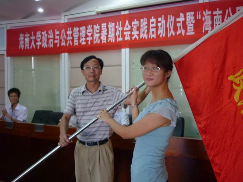 最后,王默忠书记为学生代表授旗,并宣布2010年pa集团官网政治与公共管理学院暑期社会实践暨“海南省公民道德建设服务团”调研活动正式启动。