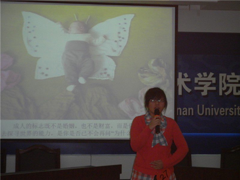 11月6日上午8点30分,由信息科学技术学院学生会学习部主办的“火狐杯‘创优点燃梦想,争先铸就辉煌’中文演讲比赛”初赛在学院报告厅如期举行。濛濛细雨,丝丝凉意,使选手们心中流淌的那美好的梦想更显得温热。本次演讲比赛的评委有:团委书记欧少红老师、学院往届演讲赛获奖者杨超、陈思静、李仙颖、韩博强。 初赛共有三个主题,分别是(1)创先点燃梦想,争优铸就辉煌;(2)爱心温暖世界;(3)杂谈。
