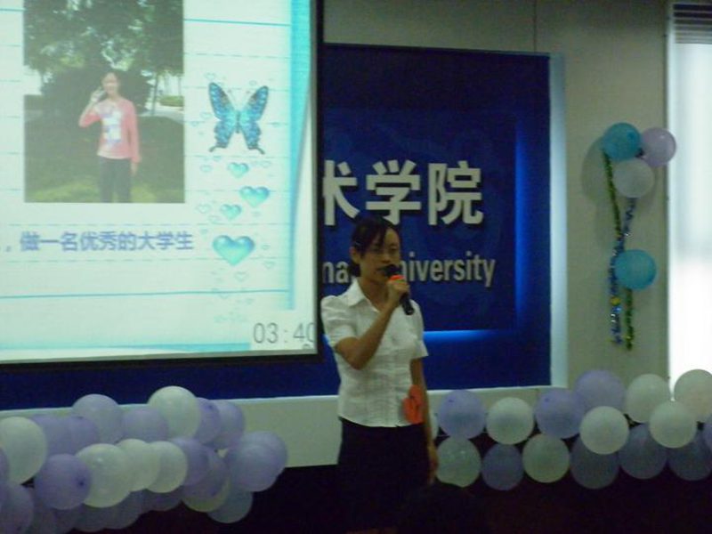 2010年11月11日晚7:00,夜幕已徐徐拉起,天气有些阴冷,校园有一处却灯火辉煌、热情满溢,那就是信息科学技术学院报告厅,在这里学院“创先争优,立志海大”中文演讲比赛决赛隆重举行。本次大赛由院学生会学习部主办,特别邀请了信息科学技术学院党委蒙秋妍副书记、政治与管理学院汪浩副教授、人文传播学院孙海兰老师、学工办齐昌盛老师担任评委。学生工作办公室全体老师和部分兄弟学院学生会主席、学习部部长莅临现场一起欣赏信息学子的风采。会场布置优雅,座无虚席,气氛温馨。 决赛开始前,学工办陈鹏老师代表嘉宾致辞,预祝本次大赛获得圆满成功。本届演讲赛以“创先争优,立志海大”为主题,经过初赛的选拔,共有10名选手脱颖而出,在决赛的舞台上角逐桂冠。比赛正式开始,十名选手“双双入场”登台亮相,喊出各自的参赛宣言,一开场便掀起了观众的热情。本次决赛共分“主题演讲”和“即兴演讲”两个环节。第一个环节十位选手依次登场,选手们紧紧围绕主题,展开鞭辟入里的分析。第二个环节中,选手们抽取即兴演讲主题,在2分钟准备时间后立即开始限时三分钟的即兴演讲。选手们表达流利、表述流畅,其中来自2009通信(1)班的于颉感情热烈,声音铿锵有力,恢弘的气势感染着现场每一位观众,获得各评委老师的一致好评,最终夺得冠军!2010信息安全(1)班的杨柳也凭借自己独特气质获得二等奖,并收获“最佳人气奖”。2010信息安全(2)班的演讲新秀李肯从初赛的激昂到决赛的稳健,以快速的破题和灵活的语言赢得阵阵掌声,与杨柳并列荣获二等奖。比赛过程中穿插的观众互动活动“歌曲接龙”和“我爱记歌名”精彩有趣,活跃了赛场的气氛,场上掌声欢笑声不断。 赛后,汪浩副教授对全场比赛作了细致点评。他用了“惊喜”和“意外”高度肯定了选手们的精彩表现,为理工科学生展现出的文采与感召力而赞叹,但是,演讲中选手们情绪渲染过多而缺少对主题更深层次的思考。他希望同学们树立自信,夯实知识根基,在演讲的土壤中探索方法、讲求技巧。之后,蒙秋妍副书记、陈鹏老师、齐昌盛老师为获奖选手颁发证书及相关的奖励。至此,本次中文演讲比赛圆满落幕!记者站:孙正、谢志煌