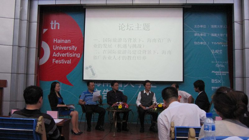 随后,开幕式进行了以“在海南国际旅游到背景下,海南省广告人才的教育培养”为主题的论坛。由pa集团官网人文传播学院党委孙晓媛副书记、世鹏地产李东绪经理、 风云国际广告公司的张健副总经理、北京网势广告海南分公司赵鹏程总经理和学生代表广告协会前任会长安康分别发言,并引全场观众强烈反响,随后,国语广告、中视、三乐、金页、国际旅游岛商报、海口广播电视台等广告公司和媒体代表纷纷表达自己的观点,现场气氛十分热烈。嘉宾们就海南省广告公司的人才现状,海南广告专业学生就业状况以及企业对人才及广告公司的需求进行了深入探讨。随后进行的学生提问环节,更是掀起了新的讨论高潮。