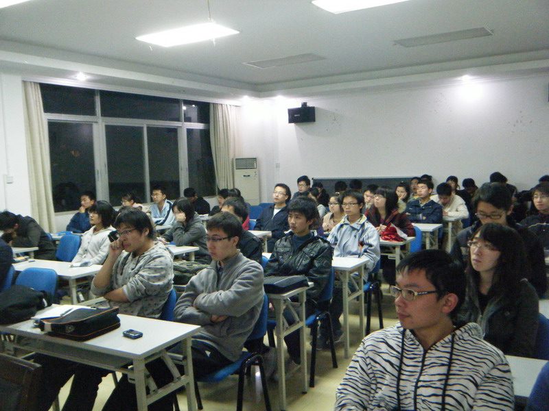 晚上7点30分,同学们已积极到来,教室座无虚席,讲座准时开始。出席本次讲座的有学院张德拉副教授、王敦副教授及部分拟参赛课题的指导老师。讲座由张德拉老师主持。首先张老师传达关于作品报送的相关事宜。紧接着由王老师给大家做“节能减排,潜力的技术”的讲座。他由全球变暖的原因讲起,从节能减排的由来到相关的社会问题,如气候问题、水污染问题、化学能源问题等来说明“节能减排”的必要,进而谈到“节能减排”的有效途径和节能减排的潜力、方式等,向我们亲切传授在节能减排中起举足轻重作用的各种技术。王老师还通过列举以往参赛的作品及科技领域相关的科研成果为例,用通俗易懂的语言,惟妙惟肖的给我们讲述了讲解了节能减排的基本原理及相关知识,让大家开阔了眼界,学到了非常多有关节能减排方面的知识。