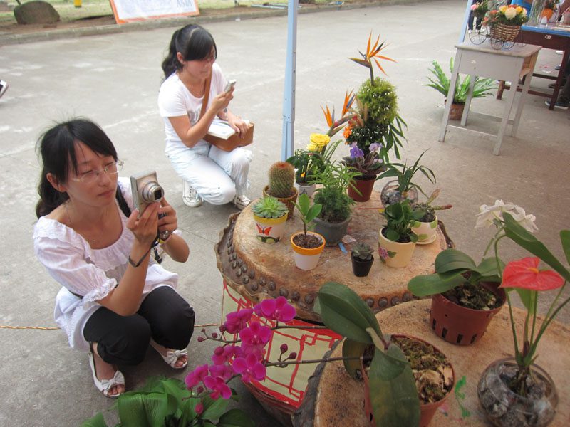 学生在盆栽花卉展区观展