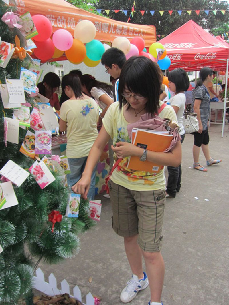 活动在各种展览与音乐的萦绕中进行,同时也为同学们提供了很多的趣味性的活动。例如花卉拼图,填写对毕业生的祝愿卡、许愿树等等,让活动取得了积极的参与性。同时也让展区充满了青春的气息。