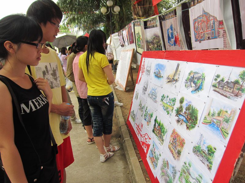 园林专业的同学们绘制了各种花草、建筑、静物、风景等作品,通过筛选后以板报形式进行了展览。精致的图案与绚丽的色彩,活灵活现的花草,栩栩如生的人物肖像,使活动展区吸引了无数的同学驻足围观,叫好声一片。