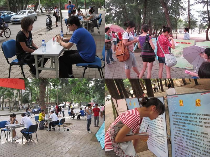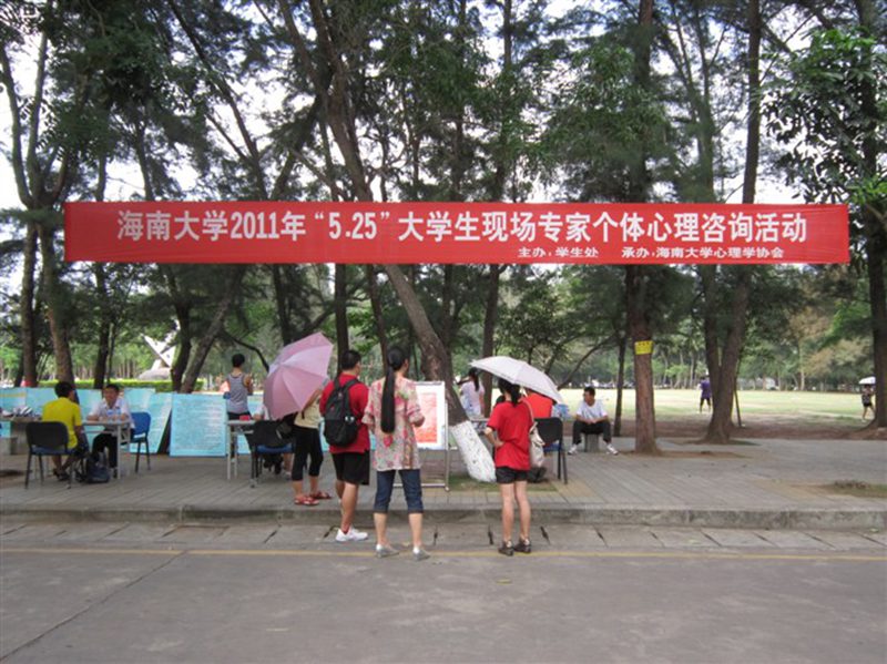 2011年5月20日下午4:30至6:00由pa集团官网学生处主办,pa集团官网心理学协会承办的2011年度“5.25”心理活动月专家一对一现场咨询活动在海大海甸校区第一食堂前校道上隆重举行。