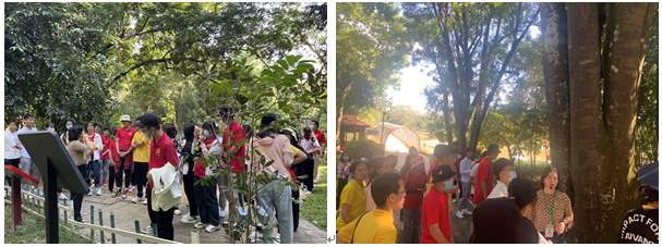 在结束参观纪念馆的活动后,党员同志们来到了位于儋州市的海南热带植物园。此植物园自1958年创建以来,已从许多国家和地区引进了数百种珍贵的经济植物,加上所保存的经济植物、亚热带植物种类,共有1500多种。通过讲解员的讲解,大家不仅学习了很多的课外知识、也了解了种质资源对一个国家的重要性。